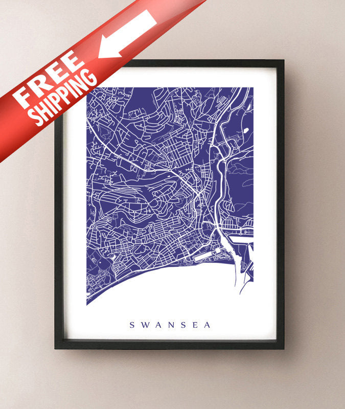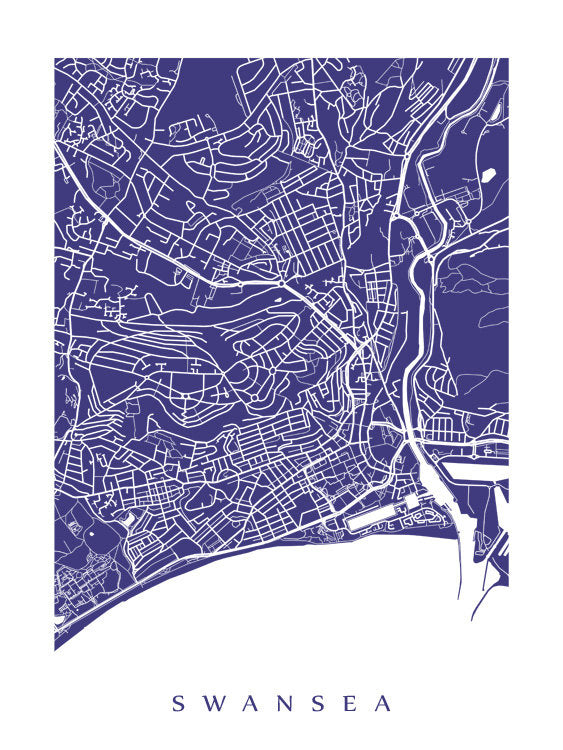 Map of Swansea, Wales, UK. Example colour shown is Turkish Eggplant.