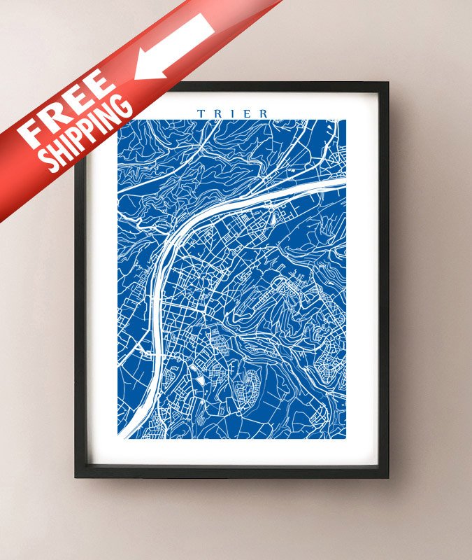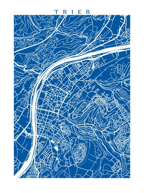 Map of Trier, Germany. Example colour shown is Default Blue.