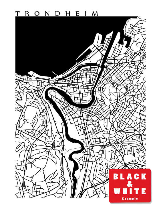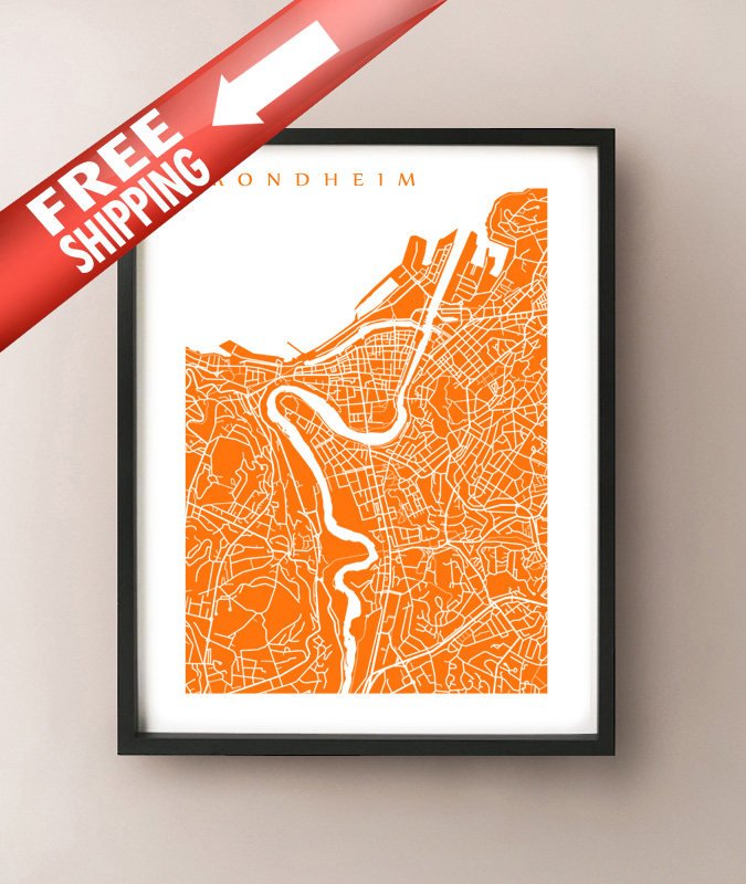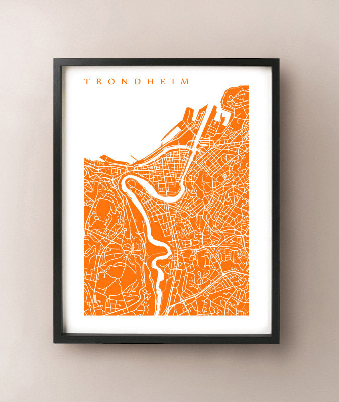 Map of Trondheim, Norway. Example colour shown is Florida Orange.
