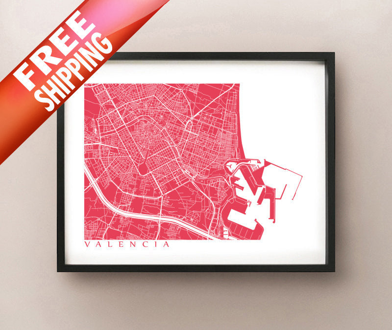Map of Valencia, Spain. Example colour shown is Valencian Crimson.