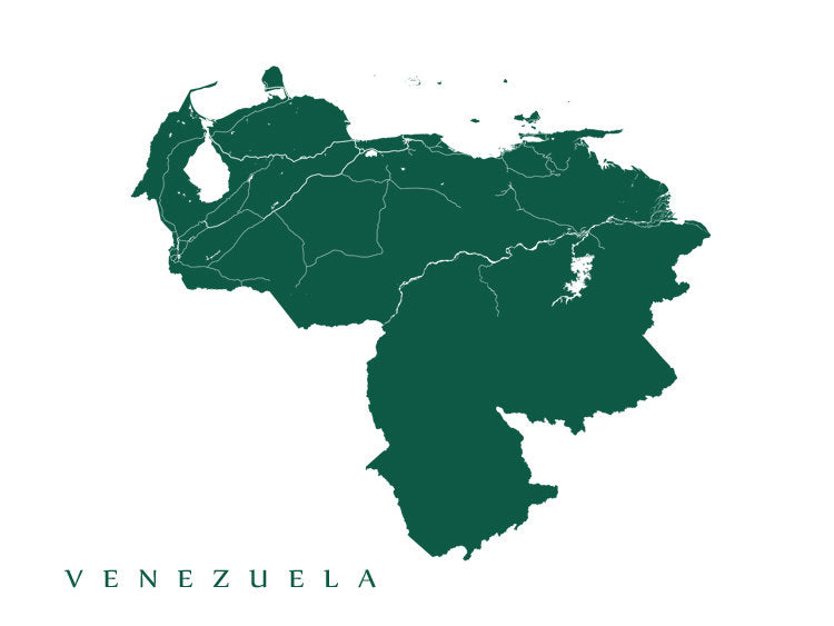 Map of Venezuela. Example color shown is Spanish Viridian.