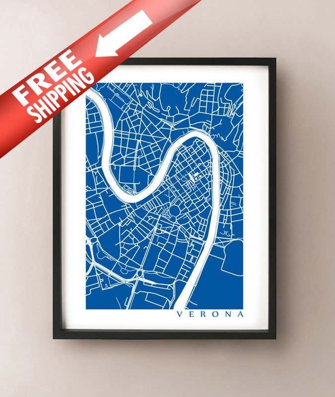 Map of Verona, Italy. Example colour shown is Default Blue.