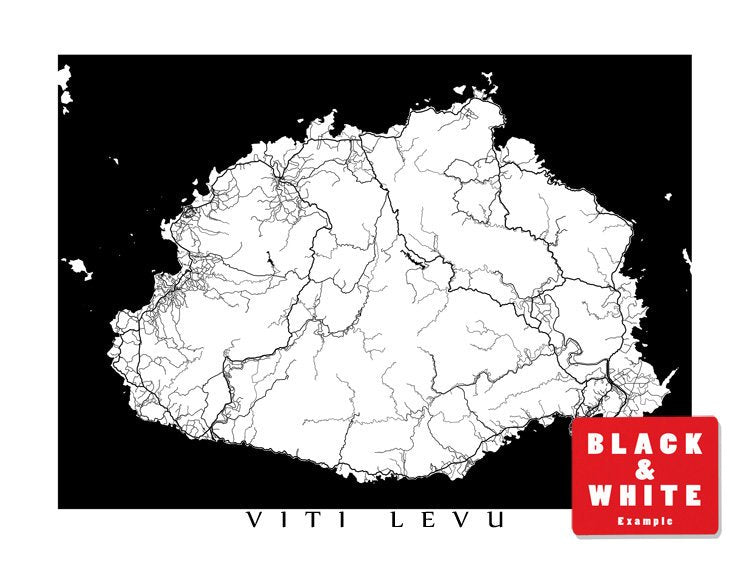 Map of Viti Levu Island, Fiji. Example colour shown is Pittsburgh Steel Blue.
