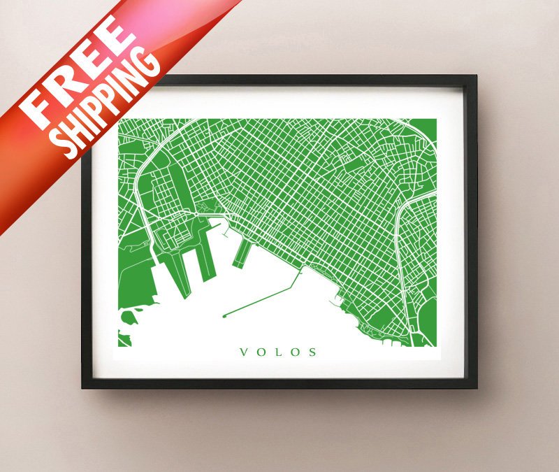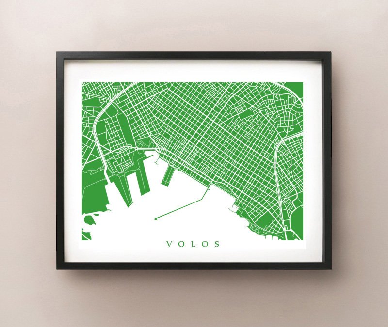 Map of Volos, Greece. Example colour shown is Irish Fields.