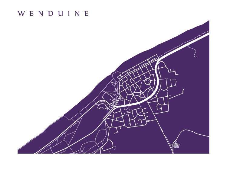 Map of Wenduine, Belgium. Example colour shown is Tyrian Purple.