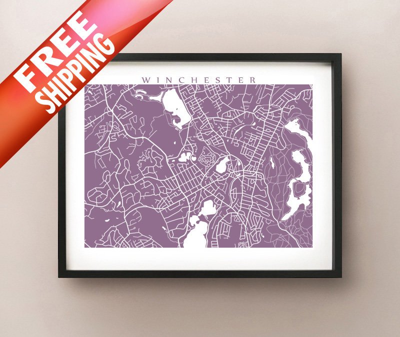 Map of Winchester, Massachusetts, USA. Example color shown is American Sultana.