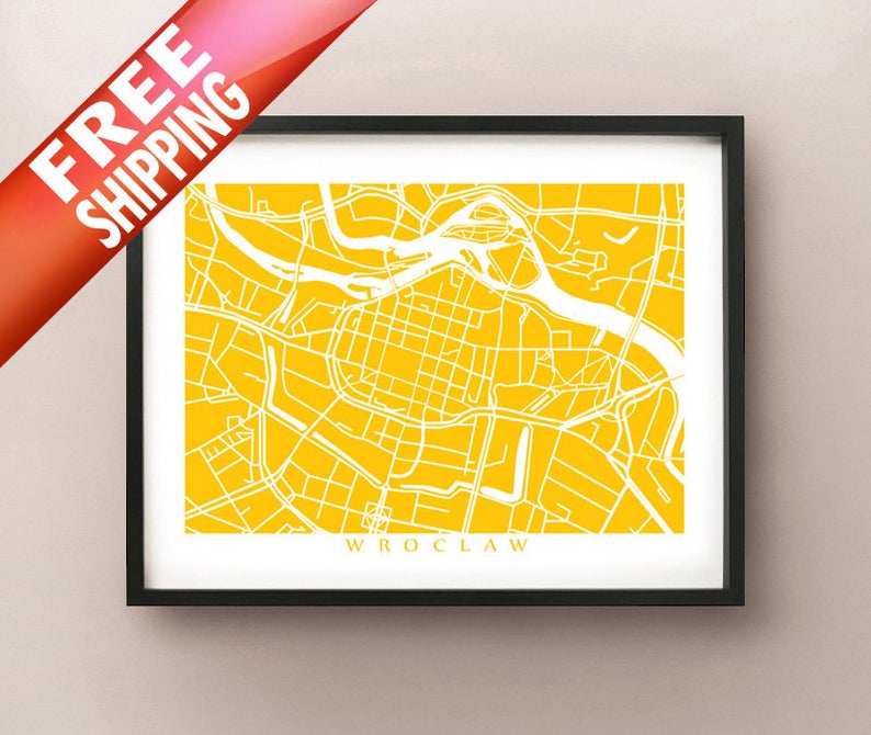 Wroclaw, Poland map. Example colour shown is New York Taxi.