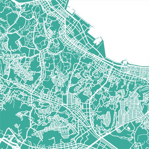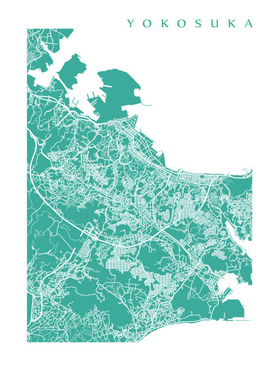 Map of Yokosuka, Japan. Example colour shown is Muzo Emerald.