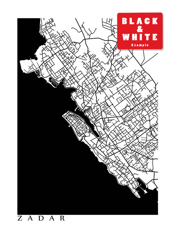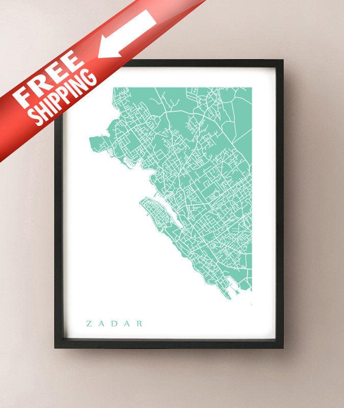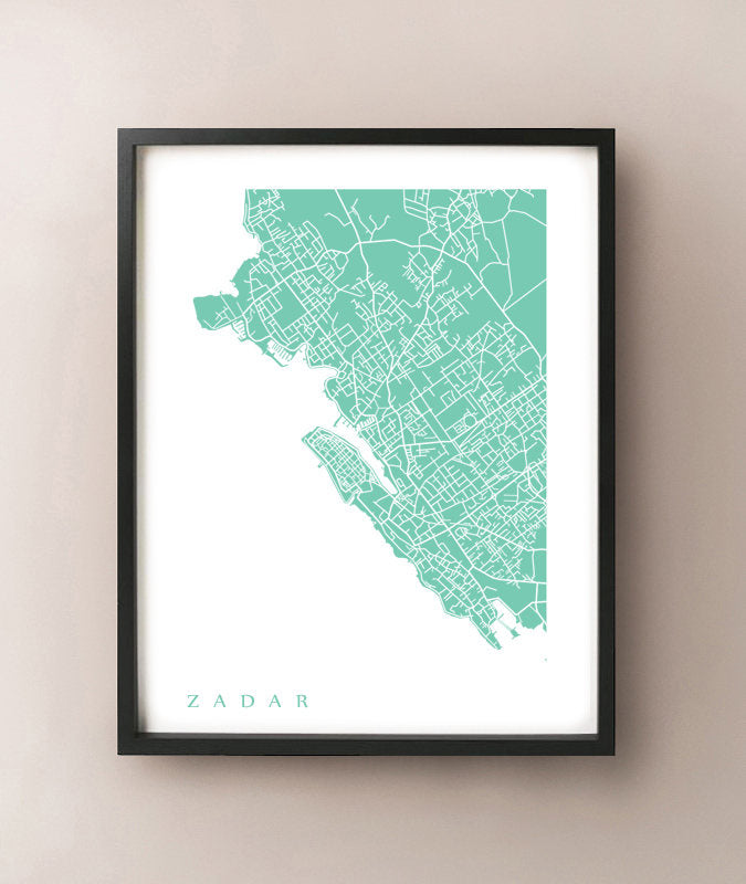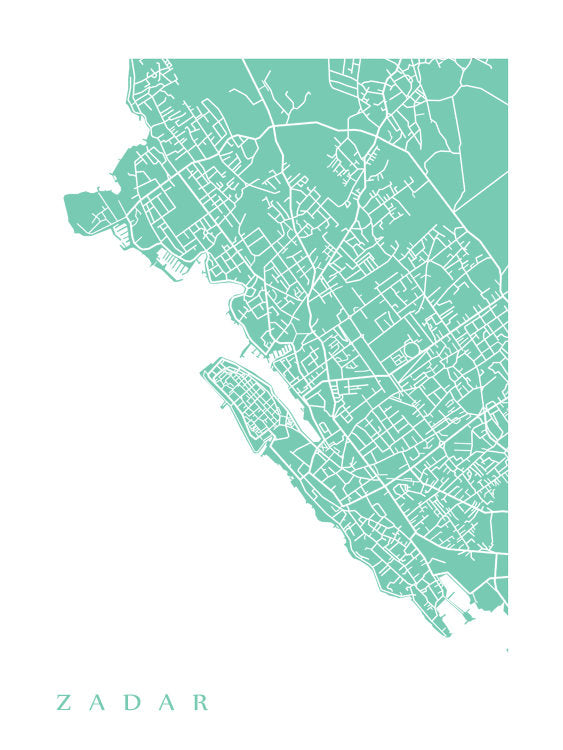 Map of Zadar, Croatia. Example colour shown is Lake Louise.