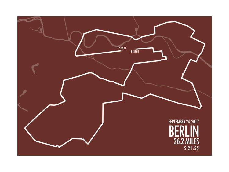 Berlin, Germany 2017 marathon map. Example colour shown is Spanish Viridian.