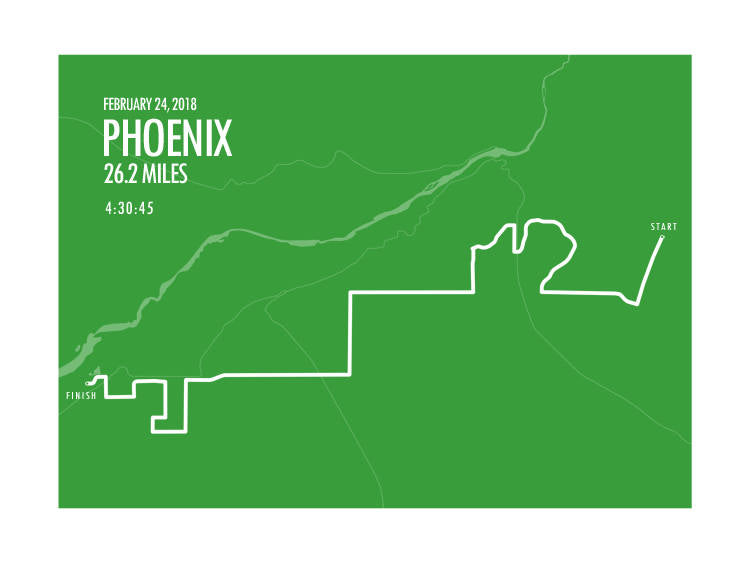 Phoenix, Arizona 2018 marathon map. Example color shown is Irish Fields.