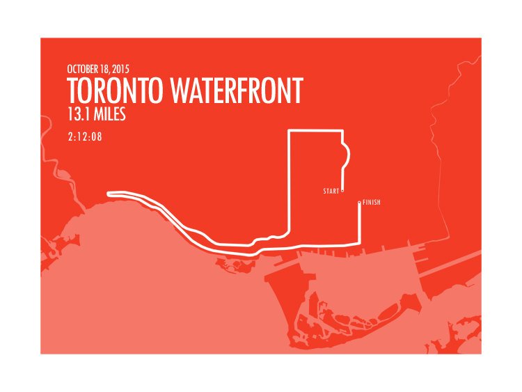 Toronto Waterfront Half-Marathon 2015 map. Example color shown is Caicos Caribbean.