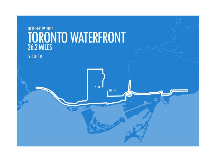 Toronto Waterfront 2014 marathon map. Example color shown is English Cerulean.