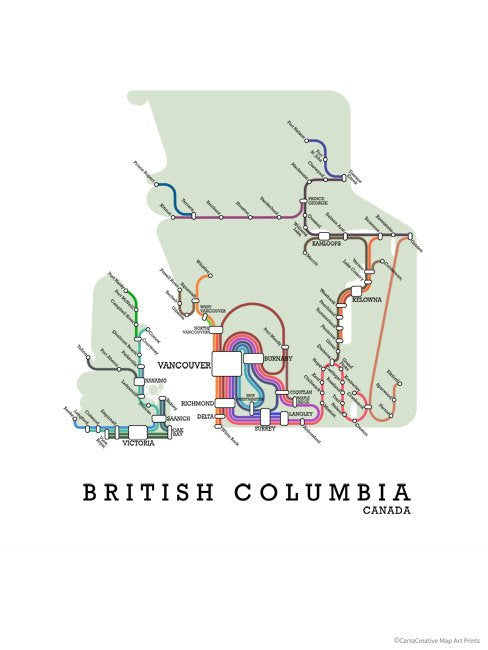 British Columbia, Canada fictional metro map.