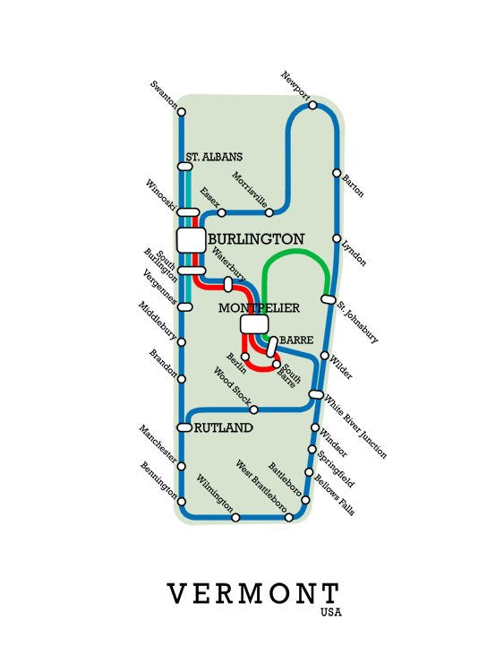 Vermont, USA fictional metro map.