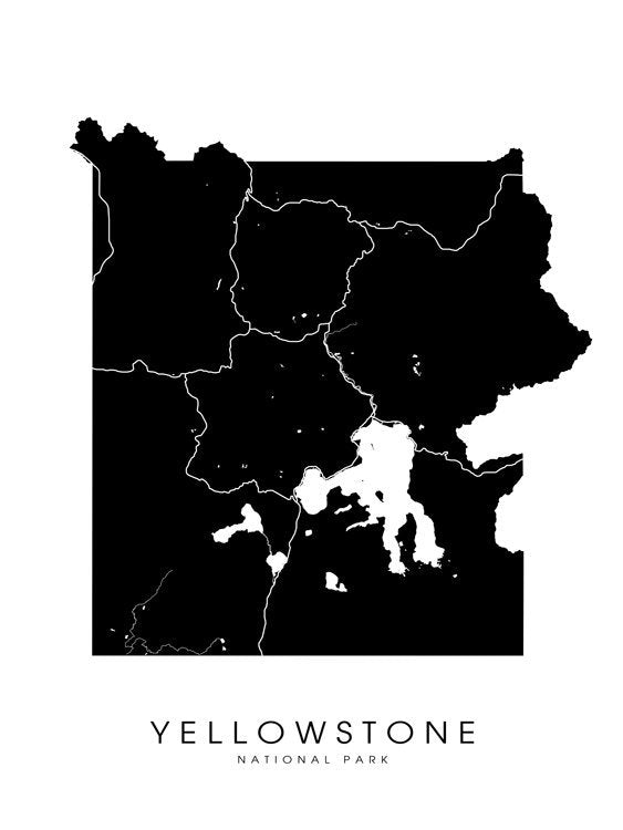 Map of Yellowstone National Park, Wyoming, USA. Example color shown is Antarctic Night Sky.