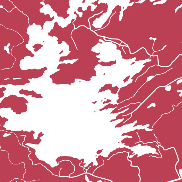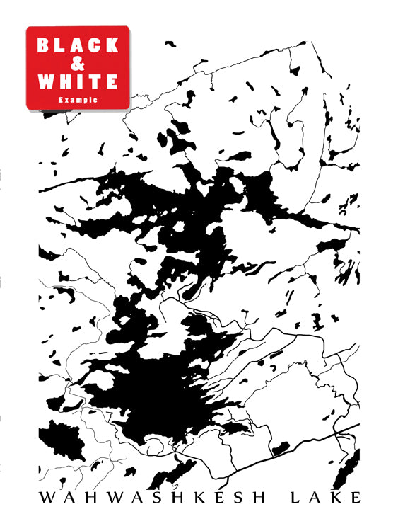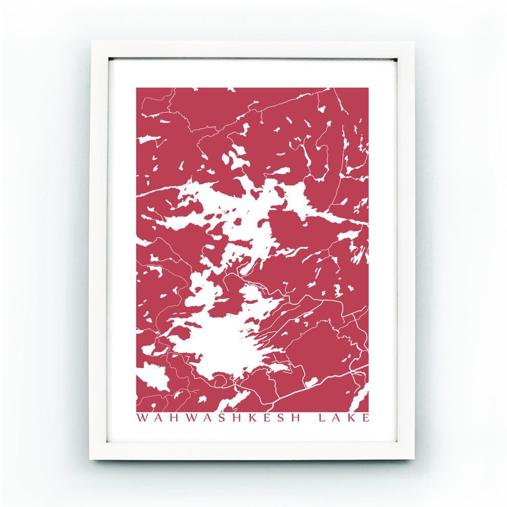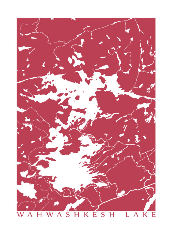 Map of Wahwashkesh Lake, Parry Sound District, Ontario, Canada. Example colour shown is Tanzania Garnet.